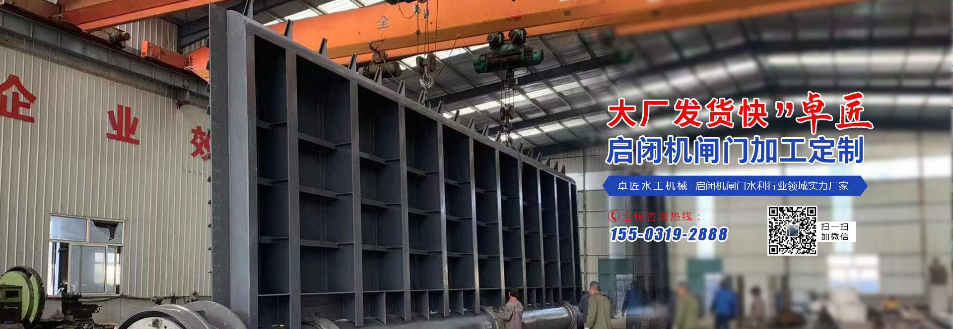 欢迎来到河北卓匠水工机械有限公司官网!热门关键字: 螺杆式启闭机卷扬式启闭机铸铁闸门钢制闸门清污机、拦污栅液压钢坝系列拍门系列